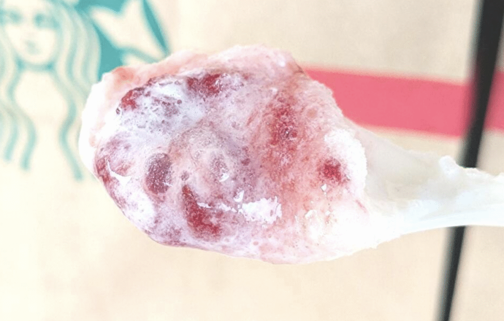 スターバックスの新作「ストロベリー&ジョイフルメドレー ティー フラペチーノ」をいただきました。