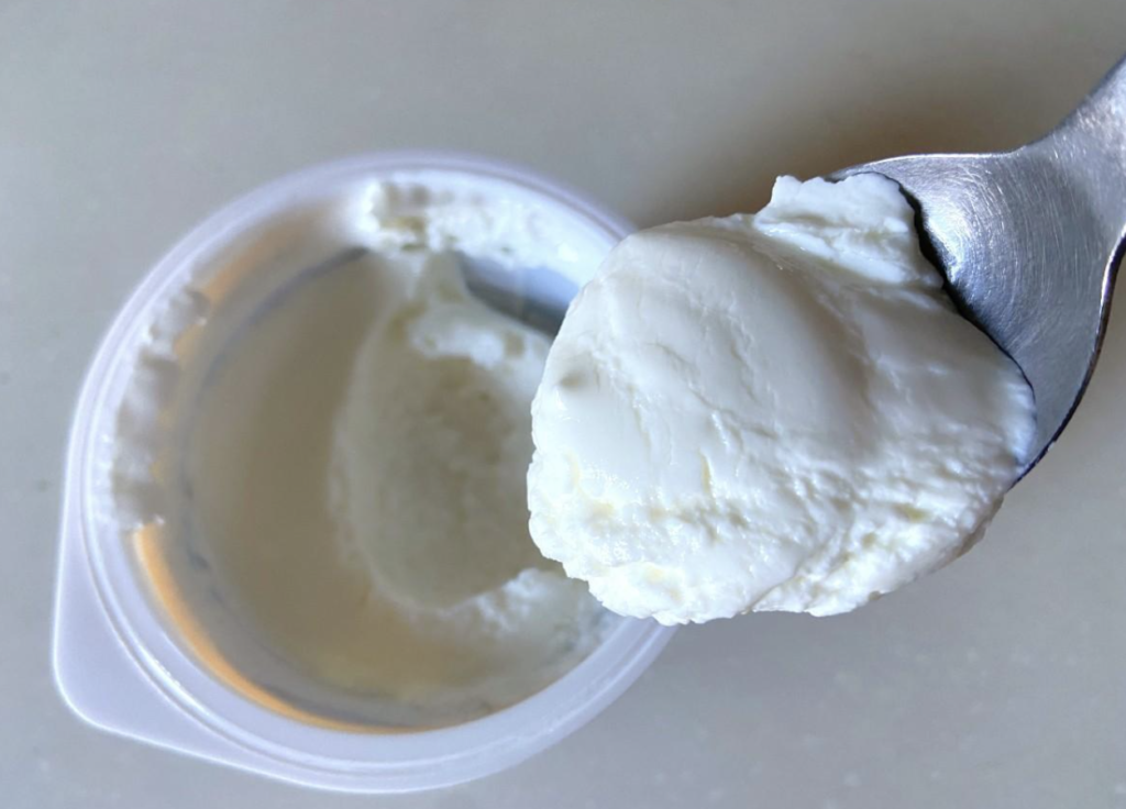 上のヨーグルトは濃厚でクリーミー。